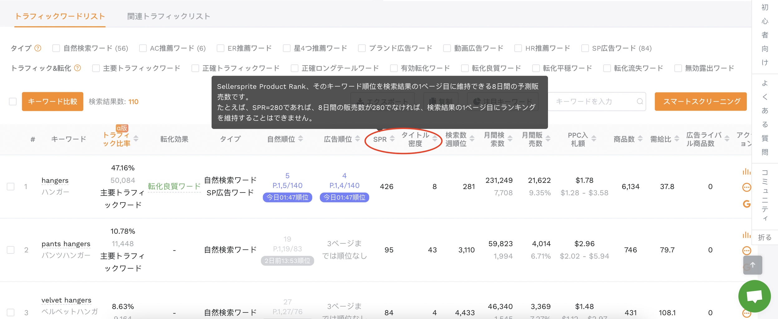 たとえば、SPR=280であれば、8日間の販売数が280でなければ、検索結果の1ページ目にランキングを維持することはできません。