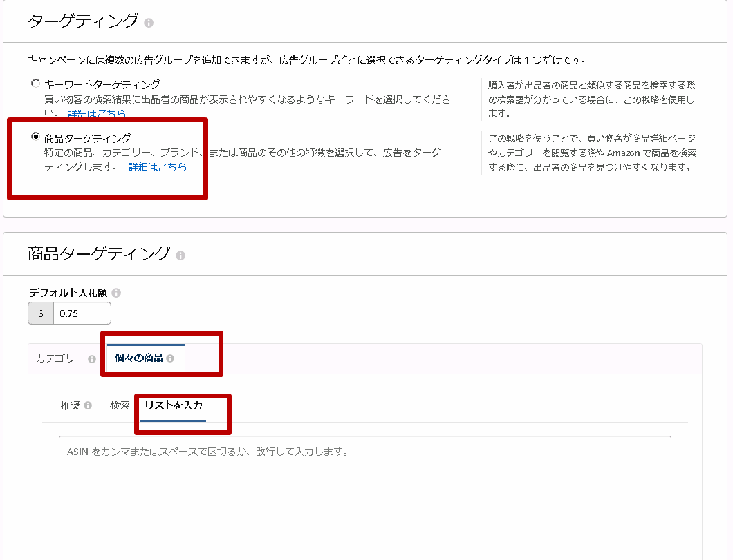 商品ページの展示位置の入札額を0.4ドルに引き上げられます。