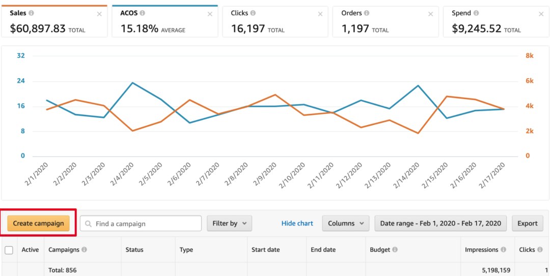 セラーセントラルのCampaign Managerをクリックし、Create Campaignを選択します。