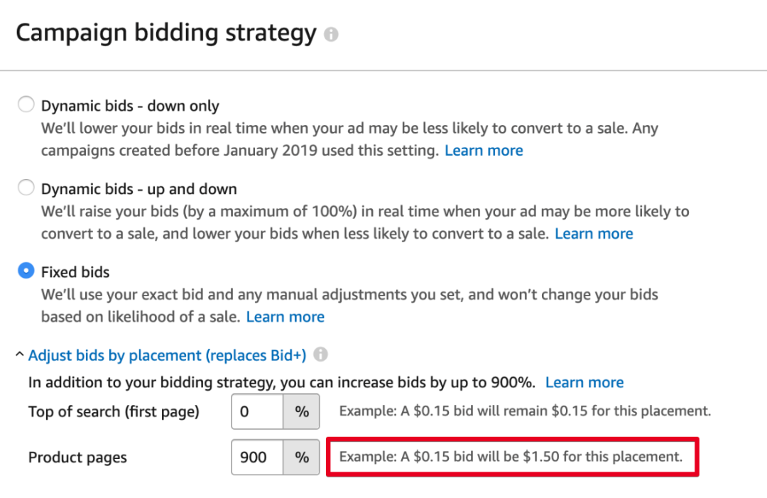 なお、商品ページ位置の入札額を上げるには、広告シリーズでのみ設定可能であり、単一の広告グループでは設定できないです。これは、広告シリーズが提供する位置に応じて入札額を調整する機能です。