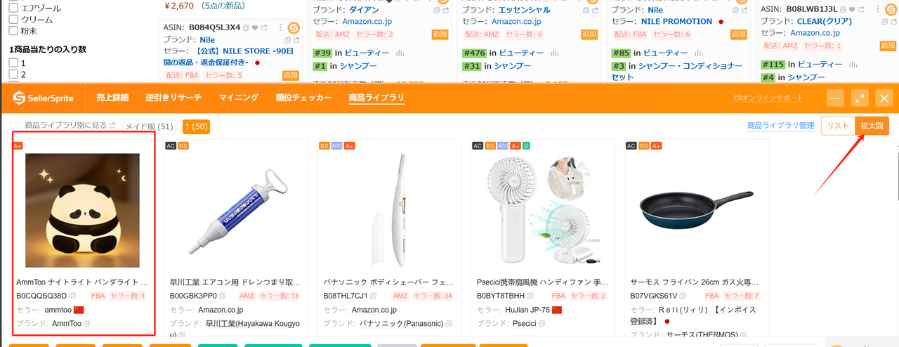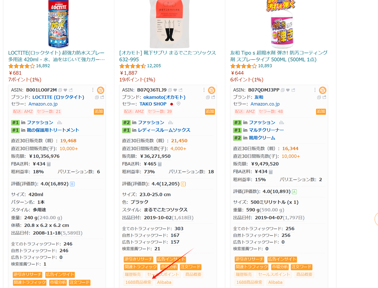 このツールを使って売れる商品と関連している商品をいっぱい見つけることができます。これらの商品を参考して、商品ラインナップの構築につながることができます。