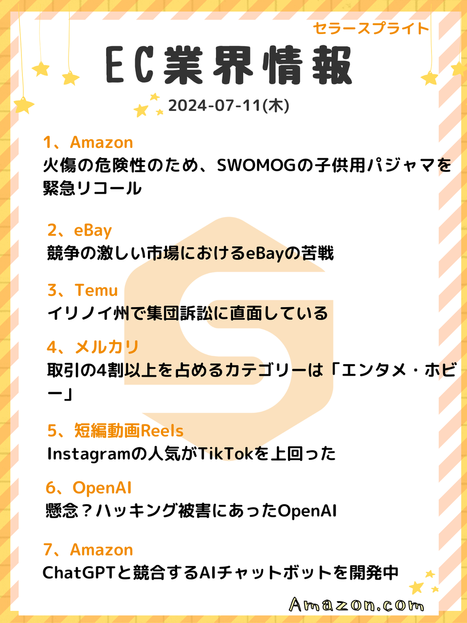 詳しく>>>【EC業界情報】週間ニュースまとめ(2024-07-11) | SellerSprite