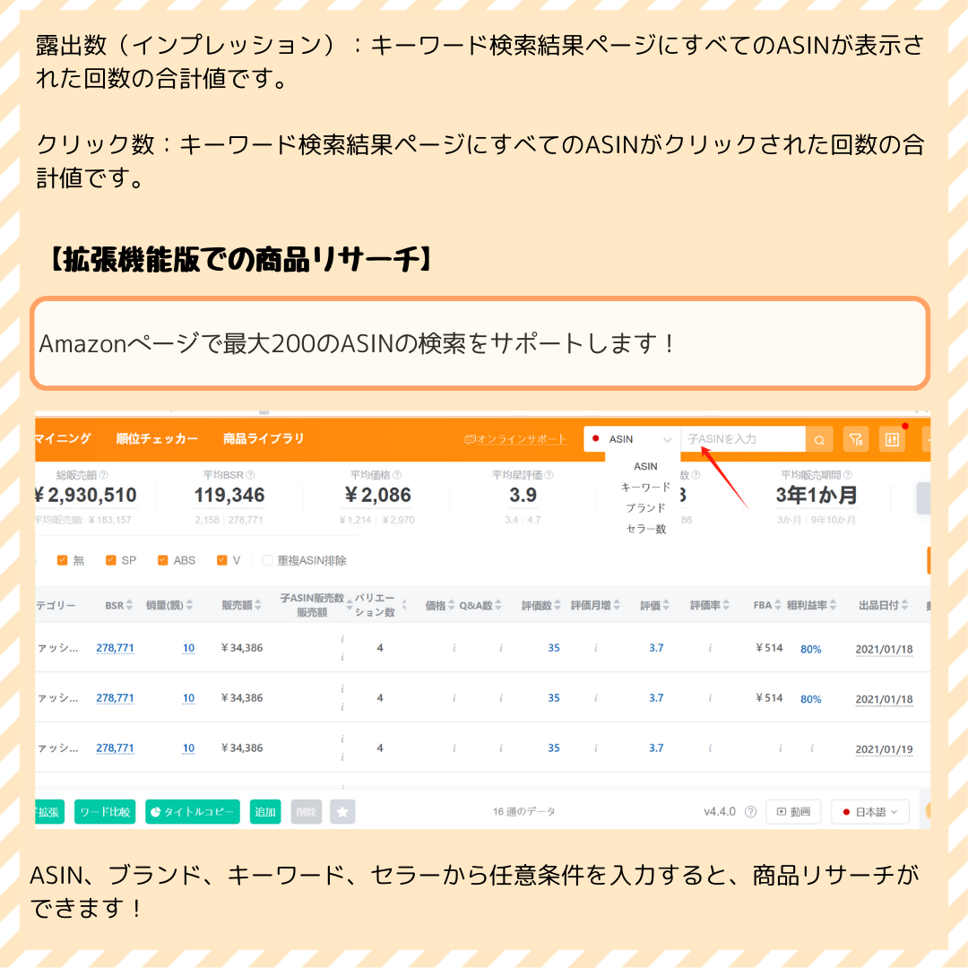 Amazonキーワード最適化、ビックデータを用いた 商品リサーチ分析ツール